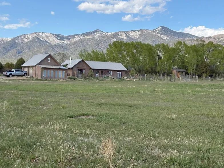 **Stunning Adobe Home on 4.8 Pastoral Acres in Des Montes** Discover this beautifully maintained two-bedroom, two-bath 1950 square foot adobe home, a dedicated office building, two and a half car garage with attached sun-filled solar room, and studio nestled on 4.8 tranquil acres with surface water rights in the highly desirable Des Montes community. (House is 1950 heated Sq ft, Studio/ loft is 360 Sq ft, Office building is 120 sq ft.) This property offers breathtaking vistas, including mesmerizing views of Taos Mountain at sunrise and sunset. This passive solar optimizes energy efficiency. You will appreciate the high quality finishes such as the marble and granite countertops in this gourmet kitchen. Additional features are spectacular high ceilings with Douglas fir accents, Sierra Pacific windows, in floor radiant heat, recessed lighting throughout, Alder doors, a Hearthstone Craftsbury woodstove, many trees include pinon, ponderosa, aspen, apple, peach, and cherry fruit trees. 1500 gallon cistern, - Water rights included for irrigation or landscaping. Seller has Agricultural Exemption. The thoughtfully designed, flowing floor plan combines style and functionality, creating a warm and inviting atmosphere. With its exceptional construction and finishes, this property offers both comfort and outstanding outdoor living in a serene setting. This pastoral setting is in a horse and farm animal friendly community. This property makes it an ideal choice for equestrian enthusiasts. Ride out your front door for miles The picture of the horses belong to the neighbors and wonderful to see them across the road.. . Don't miss the opportunity to make this extraordinary property your own.