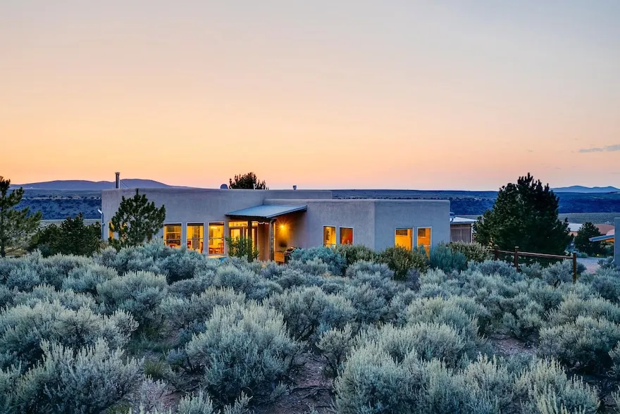 Own your 10-Acre Equestrian Retreat with Casita & Breathtaking Mountain Views. Experience the wide-open beauty of Northern New Mexico with this equestrian property, perfectly positioned between the Rio Grande River Gorge and the Sangre de Cristo Mountains. From sunrise to moonrise, the scenery is unforgettable wide open golden mesa sunsets to the west, and glowing mountain sunrises to the east, with plenty of space to ride and roam. The main 2-bedroom, 2-bath home offers a light-filled living room framed by picture windows, bringing the dramatic landscape indoors. In winter, a wood-burning stove adds a cozy glow to your evenings, while radiant floor heat quietly maintains comfort throughout the home. A mini-split air conditioner in the main room, and in the studio, keeps summer days pleasant until evening breezes complete the perfect Northern New Mexico climate. The house and Casita hav...