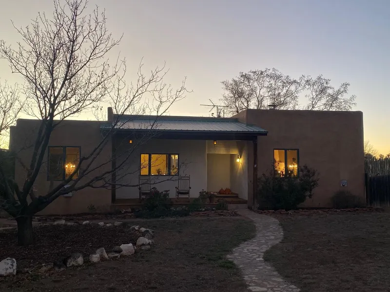 It's been said that Taos is a "State of Mind" - and this home embraces that true Taos spirit throughout. The earth-toned living room features an oversized southwestern style fireplace and banco creating a cozy environment for intimate conversations with friends and family. Natural light enhances the living room from a skylight and large north facing picture window that perfectly frames the view of Pueblo Peak beyond. Wood floors and tongue and groove beamed ceilings accentuate the Northern New Mexico feel throughout the home. The kitchen layout is efficient and features granite countertops and opens onto a spacious covered deck for sunset dining. Both bedrooms share a large updated bathroom. Modern, efficient natural gas Rinnai wall heaters supplement electric baseboard heat. A detached studio/workshop is ready for your creative endeavors. Your four-legged family members with love the la...