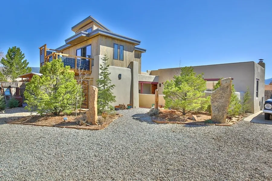 Charming Southwest-Style Home with Modern Guest House Near Taos Plaza Discover the perfect blend of classic New Mexico charm and contemporary comfort in this beautifully maintained Southwest-style home, located just minutes from the historic Taos Plaza. With iconic adobe-style architecture, wood vigas, and warm earth-toned finishes, the main residence exudes character and authenticity throughout. Step inside to find updated bathrooms with stylish tile work and modern fixtures, adding a touch of luxury to the home's rustic charm. The living spaces are bright and welcoming, perfect for relaxing or entertaining, while the thoughtfully landscaped yard offers tranquil outdoor areas to enjoy the mountain air. Adding exceptional value is the brand-new guest house-sleek and modern with clean lines, abundant natural light, and a private entrance. Ideal for visiting family, a home office, or poten...