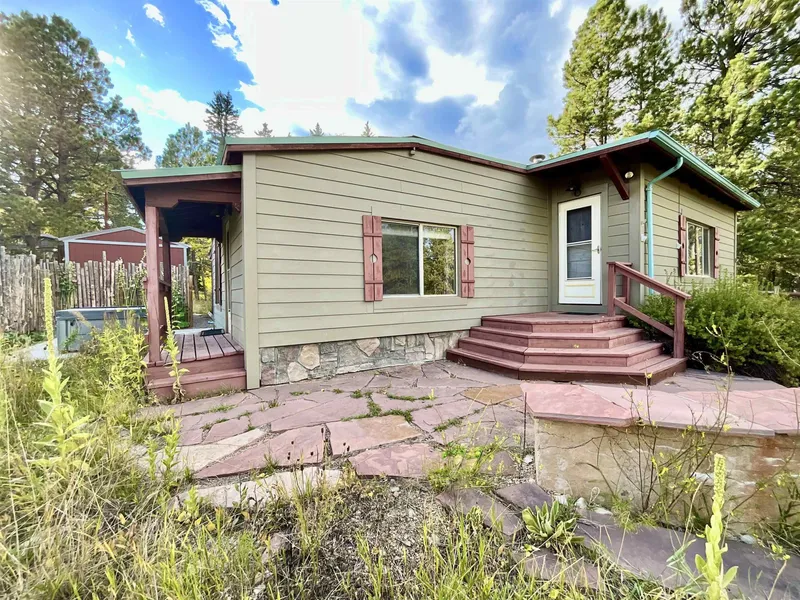 Charming mountain retreat located in the desirable Valle Escondido Golf Course community. This 2-bedroom, 1.5-bath home includes a bonus room (potential extra bedroom or office space?) and TWO large storage buildings. Features include Hickory wood and ceramic flooring, granite countertops, stainless steel appliances, a hot tub, and a modern security system. Back porch is wired for a Kiln and/or Potters wheel. Enjoy breathtaking views of the surrounding mountains and wildlife as they pass by right in front of your stone patio area. The property's proximity to Carson National Forest is an added plus, with year-round outdoor recreation including hiking, camping, hunting, mountain biking, and ATV/UTV trails. As part of the Valle Escondido Golf Course Association, you'll also enjoy access to amenities such as a swimming pool, fishing ponds, playground, basketball/volleyball courts, golfing, a...