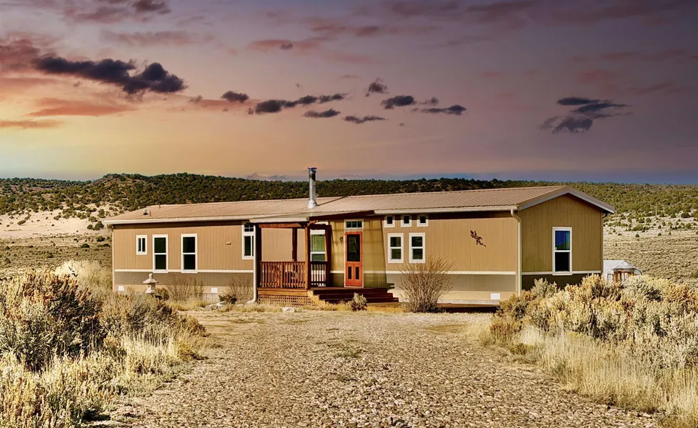 A spacious and picturesque home nestled amidst the serene landscapes of Carson, New Mexico, awaits your discovery. Only a short drive off the highway, this meticulously maintained 1175 square foot, two-bedroom, two-bathroom manufactured home is situated on a substantial 10-acre lot at the southernmost slope of Tres Orejas Mountain. The property boasts a convenient two-car carport and shed, providing ample storage space or the potential for a studio or workshop. Surrounded by tranquility, the property is home to the enchanting sounds of birdsong and the occasional sighting of wildlife. The western section of the property leads to a breathtaking canyon. This spectacular property has hiking trails nearby the lot that offer an array of adventures and unforgettable memories to be made. The expansive front yard is overlooked by a charming south-facing deck and covered porch, inviting you to unwind and enjoy breathtaking sunsets and endless skies. The home's interior exudes a modern ambiance, featuring beautifully executed texture walls, tile and Purgo-style flooring. It is equipped with modern appliances, high-quality windows, and comprehensive up-fittings. The house is heated by forced air and complemented by a wood-burning stove. A north-facing deck adds a touch of elegance to the backyard, where you may encounter sightings of deer, elk, coyotes, and other wildlife. The property is securely fenced at its boundaries with barbed wire, and additional coyote fencing is strategically placed in the back yard. Within proximity, you will find the vibrant community of Ojo Caliente and its renowned hot springs, conveniently located just 16 miles away. Additionally, the Rio Grande Gorge Bridge, Taos Junction Bridge, and Rio Grande access are situated within a short distance, approximately 12, 6.1, and 6 miles respectively. The property is conveniently situated approximately 30 minutes from the iconic Taos Plaza, offering easy access to the town's attractions and amenities. Don't miss out on this extraordinary opportunity to experience the cozy charm of this remarkable home nestled amidst the breathtaking beauty of Carson, New Mexico. Home is anchored, title is deactivated and is being assessed as real property.