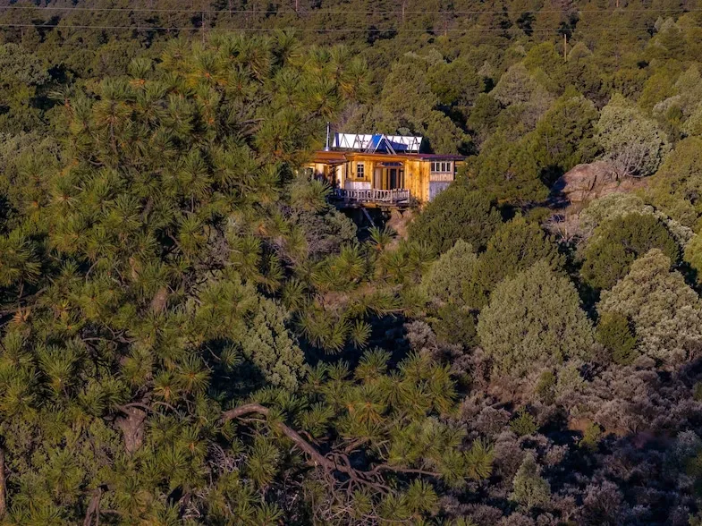 THIS PROPERTY IS ONLY AVAILABLE FOR SELLER FINANCING, AND AT INCREDIBLE TERMS! Please call for more details. Welcome to Raven s Rock! This is a truly magical 28.9 acre retreat nestled into the stunning beauty of Northern New Mexico. Perched among ancient Ponderosa pines, Pi on and cedar trees, and sculptural rock formations, this one-of-a-kind, off-grid sanctuary includes a charming two-bedroom, one-bathroom cabin, an awe-inspiring guest treehouse, and a retro Airstream for additional space or creative use. Thoughtfully designed to blend into the hillside, the main home, approximately 1,800 square feet, offers stunning forest and mountain views from its expansive front deck. Inside, you re greeted by a hand-crafted front door and rich wood floors that carry a sense of warmth and craftsmanship throughout. The eat-in kitchen features abundant storage, a walk-in pantry, and a gas range that is perfect for off-grid culinary adventures. The main house has a beautiful soapstone woodstove, and there is even a brand new one, that is still in its shipping container, ready to go into the treehouse. Both bedrooms are outfitted with custom-built beds offering generous under-bed storage, and the bathroom features a freestanding soaking tub with shower, brand-new composting toilet for added ecological sustainability, and access to a large closet/storage area. The home's impressive off-grid infrastructure includes a powerful solar system backed by eight supercharged batteries, discreetly housed in a rear utility room, along with a 1,600-gallon water catchment tank integrated into the home. This back room was built as an indoor green house with large South-facing windows, and it has an office area with built-in desk and shelves. The home s plumbing is fully pressurized, and while the catchment system has proven more than sufficient, a well is believed to be feasible with water expected between 150 190 feet below the surface. The home is being sold partially furnished. Tucked into the trees, the spectacular guest treehouse is a destination, and it is completely solar-powered and filled with forest charm. This treehouse is nestled literally into an 80-foot Ponderosa tree and is a must-see build. Nearby, the 1963 Avion travel trailer adds a dash of nostalgic flair and versatility to the property, perfect for guests, studio space, or a quiet retreat. Can outhouses be magical? At Raven s Rock, we believe they can. The property features two uniquely designed outhouses, each with its own unexpected charm. In addition to the main home and guest spaces, you'll find a thoughtfully designed workshop and storage building, with extra firewood and building materials neatly stashed behind, ready for your next creative project or homesteading task. A composting area behind the home supports your gardening ambitions, while thoughtfully placed benches throughout the property offer quiet spots for outdoor reflection, morning coffee, or sunset views. If all of this isn t enough, there are wild horses seen roaming through the property regularly. The property offers many other opportunities for wildlife watching and hunting and affords incredible mountain views. Whether you re seeking a sustainable homestead, an inspiring creative retreat, or simply a place to breathe deeply and reconnect with nature, Raven s Rock is a rare and beautiful offering!!