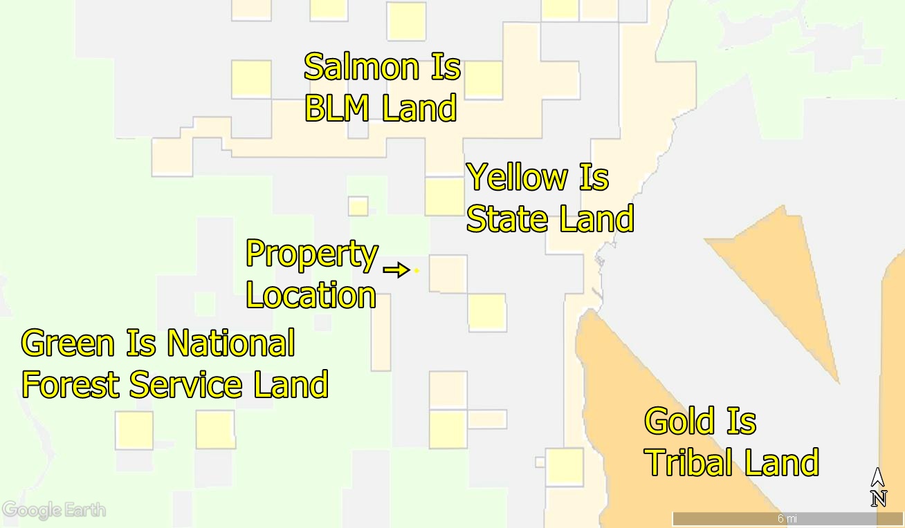 These properties are Carson Estates, Unit 5, Block 89, Lots I, J, and Block 108 Lot F. They are less than half a mile from the border of thousands of acres of National Forest Service Land!