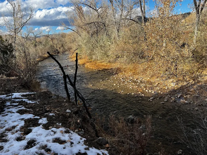 A river runs through it!! Discover serene off-grid living in Northern New Mexico, near the renowned Ojo Caliente Hot Springs. This unique parcel offers two building envelopes, no covenants, and proximity to utilities (electricity ~100 ft). There is a very old 10x50 single-wide mobile home on the property. The property borders BLM land, private land, and the Rio Ojo Caliente. Enjoy a hand trolley for river access during high water. Includes a small shed, chicken coop, horse stall, and garden space. Hike the quartz-filled canyon or fish along the riverbank frequented by wild turkeys, elk, deer, and coyotes.