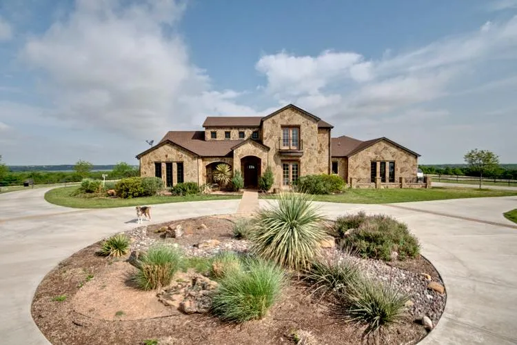 Motivated Seller! Wonderful custom 3B-3BA home on 11ac in gated Rocky Creek Ranch. Ag Exempt! Move-in ready, Vaulted ceilings, Open gourmet kitchen and living, patio w fireplace and balcony w incredible views of Benbrook Lake, formal dining and breakfast rms, great mst bath, study, large utility, 2nd family rm upstairs, Great 3 stall show barn w runs, tack, feed and half bath, 7 miles of trails, 136ac common area. Buyer to verify all information