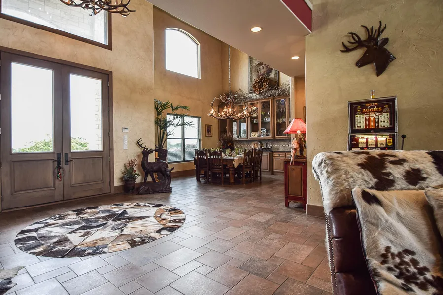 Beautiful Texas estate with elegant 8700 sq ft home in park like setting. 1200 sq ft guest home on property, 6 stall horse barn, workshop barn and 12,000 sq ft event center all located on 30 acres. Room for cattle or horses to roam, Ag Exempt acreage. Pool, sports or game room, private theater room - even your own baseball diamond. Split bedrooms, master with private setting room, private balconies. Rest, Recreation, Relaxation on your 30 acre Metroplex Ranch.