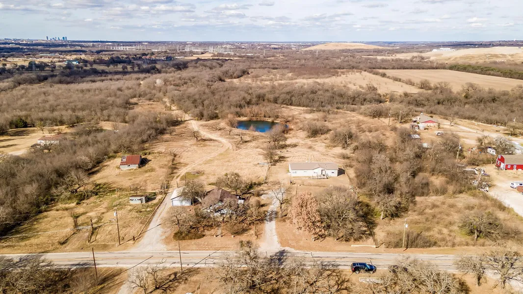This location is just country enough to keep you country! With 44 Acres, this property can be transformed into a working ranch, or developed for residential use, and is just right for an investment legacy. Plenty of land for cattle grazing, hiking, fishing, and building your dream home. This property boasts a live running creek, and a stock pond filled with catfish, blue gill, and bass, both perfect for fishing off the bank. A clear view of downtown Fort Worth, and Texas country skyline can be seen as you gaze across. Just minutes from city entertainment including Six Flags, Stockyards, Dickies Arena, Globe Life, AT&T Stadium and DFW airport you can have the best of both worlds. With utilities already on site you can begin your country living today. No HOA, No known restrictions. Already located on this property is a 100 year old farm house, an old horse barn and a double wide ...