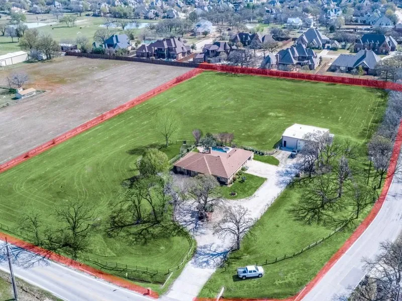 Beautiful acreage, Flatland, Ready to build an estate home. Existing home with pool, 2 Living areas & 3 Bedroom. A wonderful 45 ft x 56 ft. Steel Garage - Storage. 5.11 ACRES IN KELLER !