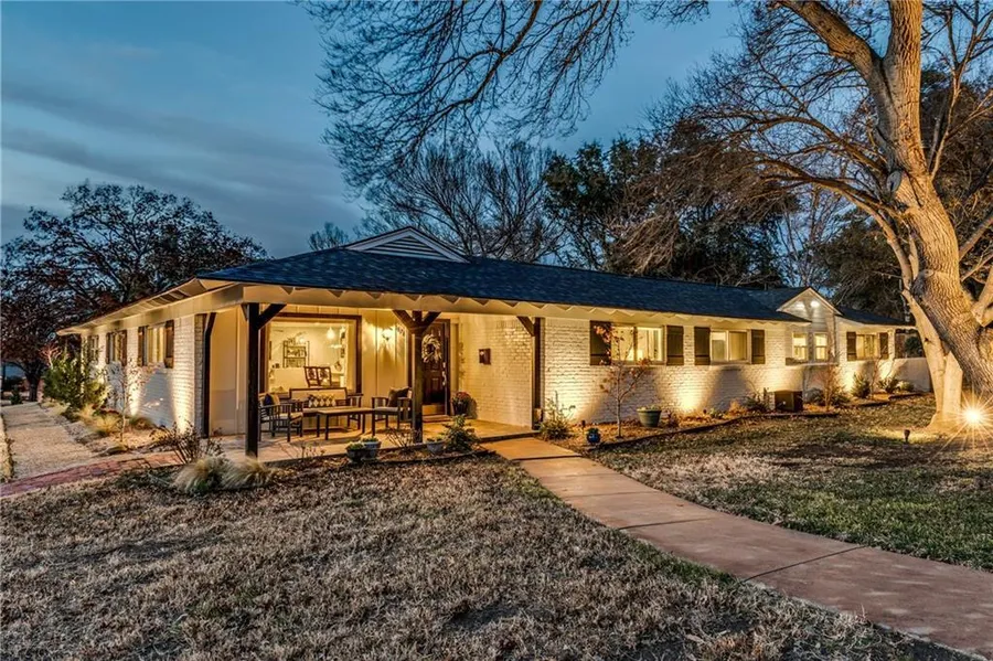 This charming 3 bedroom 2 bath ranch style home on an expansive corner lot with circle drive located in coveted Fort Worth neighborhood is move-in ready. Open concept home is completely updated with all new appliances, farm sink, large marble island, wine fridge, and hard wood floors throughout. Complete with extra room behind French doors that is perfect for a dining room, office, or playroom. Mature trees, large back covered-patio, and fire pit is optimal for entertaining. New updates with in a year include: Exterior and interior paint, Crown Molding, Landscape lighting in front and back, 5 Japanese Maples, new landscaping in front, smart home security system, Pocket door in master bath and New appliances.