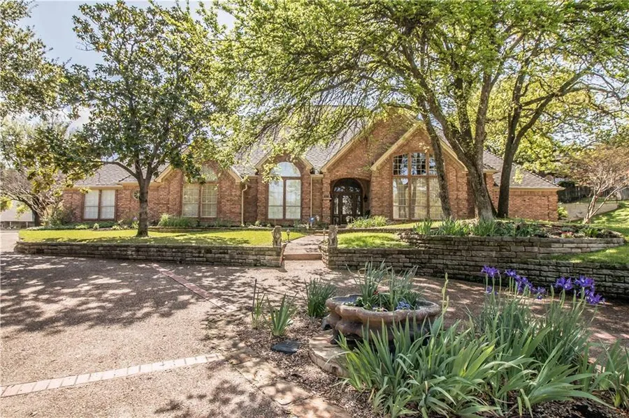 Sparkling pool and spa, waterfall feature, trees on half acre! Beautiful 4-4-3 one story home with 2 living, 2 dining, formal study and a home office. Features 3 fireplaces, classic moldings, specialty ceilings, built-ins and more. Wood floor throughout main living areas and kitchen. Gracious dining with barrel vault ceiling. Open plan family room, breakfast and kitchen overlooks pool. Elegant master suite with fireplace, bay window, patio access and large bath with separate vanities, separate shower, jetted tub. Paneled study with stunning windows has full bath and can be 3rd living. Pool bath just off utility. Kitchen garden with raised beds in courtyard just off family room. Home has 3-car side entry garage!