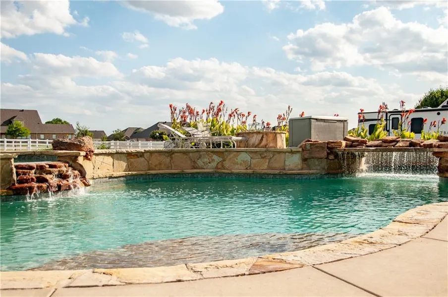 EXQUISITE CUSTOM in Lonesome Dove Estates. This home offers 4 bedrooms, 3.5 baths, game room up, three eating options, huge living & fantastic fireplace and built ins. The back yard oasis features an incredible $60+k salt water pool, with rock slide and waterfall. The home has fresh paint, new high end carpet, acacia and eucalyptus wood floors, new gas cooktop, new microwave, new pool pump, new well pump, new game room and HVAC. Fruit bearing trees landscape the yard. Fantastic kitchen for gourmet cooks. Luxury private master bath. ***NO CITY TAXES** RIDING MOWER WILL CONVEY TO BUYER!!! INSPECTION COMPLETE; EVERY ITEM ADDRESSED! .