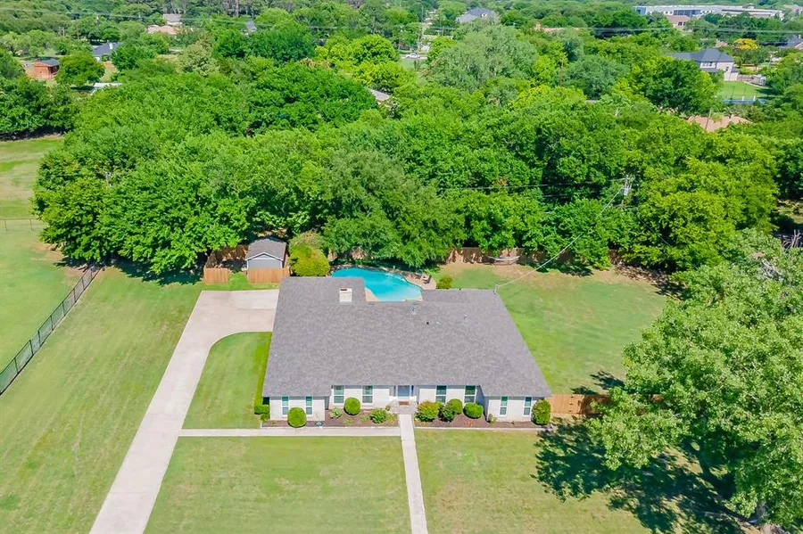 Country living at it's finest yet only 10 minutes to Southlake Town Square and Vaquero! Bring your horse, bring your goats! This sprawling ranch style home sits on almost 2 acres! Large trees line the back of the property providing shade and privacy. There is a huge area that is a perfect pasture! The home has been meticulously maintained and updated and it shows! You will love the granite countertops in the kitchen and all bathrooms, the split floor plan and the huge game room! Spend your days floating in the pool, soaking in the peacefulness. The garage has an abundant amount of storage and there's even a new shed complete with a concrete floor!