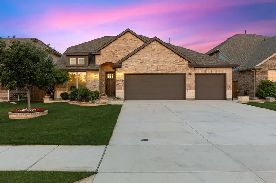 Beautiful home nestled in the Wellington community.This home features 5 bedrooms,3 full bathrooms,home office,game room & 3 CAR GARAGE. Loaded with many upgrades! Beautiful extensive wood look-tile floors.Kitchen is open to living room,complete with an ample amount of cabinetry, granite countertops, stainless steel appliances, a huge island and walk in pantry!The primary bedroom is downstairs and primary bathroom is complete with walk in shower, dual vanities & large walk in closet! Another bedroom and full bathroom down.3 bedrooms and bathroom along with a game room upstairs wired for surround sound. Smart home features. Enjoy your summer nights under your covered patio. Pool sized yard. Located in the highly sought after NWISD with Elementary,Middle & Highschool around the corner! Amenities include walking & jogging trails,playground,park & a community pool.No neighbors across the stre...