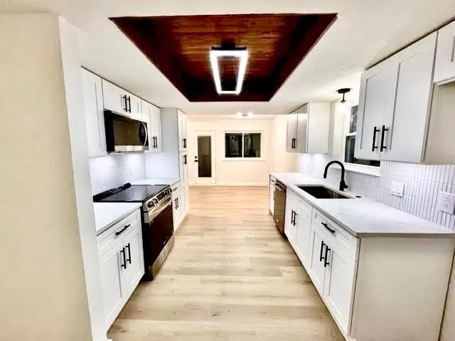 Gorgeous home completely remodeled on a corner lot. Brand new kitchen boasts new white soft close cabinets, modern backsplash, New stainless steel sink oven and microwave with quartz countertops. New energy effiicient lights and modern light fixtures throughout. All popcorn ceilings removed and new acoustic white paint and texture on the entire home. All new trim with semi gloss pure white paint.New luxury vinyl plank throughout. Entire garage painted and popcorn ceiling removed with new trim. New interior and exterior paint. Newly painted Front and garage door. Brick will be power washed and cleaned. Brand new fence on most of the yard. . back patio restained and back door painted. AC 4 years. Roof 3 years.New argon windows. Large covered patio great for pool or ping pong table. Great multi use for entertaining. Side driveway go all the way through fnce in back for RV, BOAT OR MOTORCYLE PARKING. Backyard is huge enough for pool and back patio for hot tub. Dont miss out. Call now.