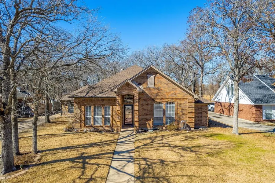 Beautifully crafted, this custom-built home located in the prestigious Oak Harbor Estates near Eagle Mountain Lake is a true gem! Step inside to discover the elegance of luxury vinyl plank flooring flowing seamlessly throughout the home. Spacious living areas provide some division while still having an open flow. Grand primary suite offers a sitting area, along with a gorgeous, updated ensuite. The renovated kitchen is adorned with quartzite counters, newer appliances, ample counter & cabinet space, and an oversized island. Large windows throughout add a touch of sophistication while allowing natural light to fill every room. 400 sf garage conversion provides nice flex use options & has two large storage closets. Lovely yard with towering oak trees & native perennials throughout. Enjoy the community amenities including sand volleyball court, beach, pavilion, playground, boat launch and fishing. All are just a short walk away. Don't miss the complete list of many updates in MLS.