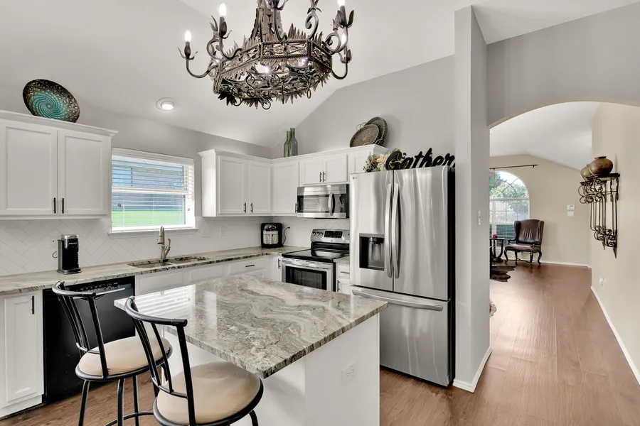 Tucked away in a peaceful neighborhood, this charming home effortlessly blends classic elegance with modern comfort. The open floor plan creates a bright and airy space, perfect for both relaxing and entertaining. The kitchen, a chef's dream, features granite countertops, a dry bar, and a versatile island. Every room is generously sized and filled with natural light, creating a warm and welcoming environment. The primary bedroom includes a flexible office space, ideal for remote work or a cozy retreat. Step outside to a spacious backyard, perfect for gatherings and outdoor fun. Just minutes from shopping, entertainment, and The Whitestone Golf Club, this home is a true find. Plus, it boasts a brand-new roof installed in 2023.