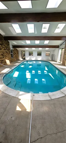The Never-Ending Swim is available! This 3 bedroom, 2 bath home is well built with plenty of storage throughout! Vaulted living room has WBFP and formal dining with built-in wet bar. Spacious kitchen has range, dishwasher, eating area, pantry. Patio door off the kitchen opens to covered porch with a swing! Main bedroom is large with patio door and walk-in closet. extra bedroom opens to pool area. 2-car garage has storage closet. Inground Gunite pool is completely covered with sitting areas, fireplace, vaulted ceilings, and surrounded by 7 patio doors. This is a swimmers dream home! Call today!254-366-9446