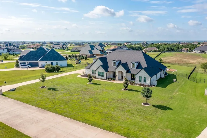 Welcome to this exceptional property in the gated community of Bella Flora, located within the highly sought-after Aledo ISD. Perfectly situated between two of North Texas most exclusive upcoming luxury communities Maverick, developed by the visionary behind Vaquero, and Bluejack National, backed by Tiger Woods this location offers a rare blend of prestige, privacy, and future value. This thoughtfully designed home features 6 spacious bedrooms, 5 full bathrooms, and an oversized 4-car side-entry garage with epoxy floors, tall garage doors, and 26-foot-deep bays ideal for large vehicles or recreational equipment. Inside, you ll find elevated custom finishes throughout, including coffered ceilings in the living room and kitchen, a groin-vaulted ceiling in the study, and a tray ceiling in the downstairs game room. The kitchen impresses with commercial-grade appliances, a double island layout, and an abundance of storage, all complemented by modern, light-filled aesthetics. The living room features European-style exposed shelving and plantation shutters, adding warmth and elegance. A spacious mudroom with six custom bays makes family organization simple, while the laundry room includes a sink and room for an additional fridge. Step outside to your own resort-style retreat: a stunning pool with a large slide, new landscaping, wrought iron fencing, and an elevated backyard that offers enchanting vista views of the surrounding area. Expansive covered patio and porch areas make outdoor entertaining effortless and enjoyable. Enjoy total energy efficiency with a solar panel system and three battery backups, bringing your electric bill to $0 and offering dependable backup power. Celebrate in style year-round with Jellyfish lighting that makes holiday decorating a breeze. With quick access to Fort Worth and major new luxury developments rising nearby, this home blends style, sustainability, and long-term value all in one of DFW s most desirable communities.
