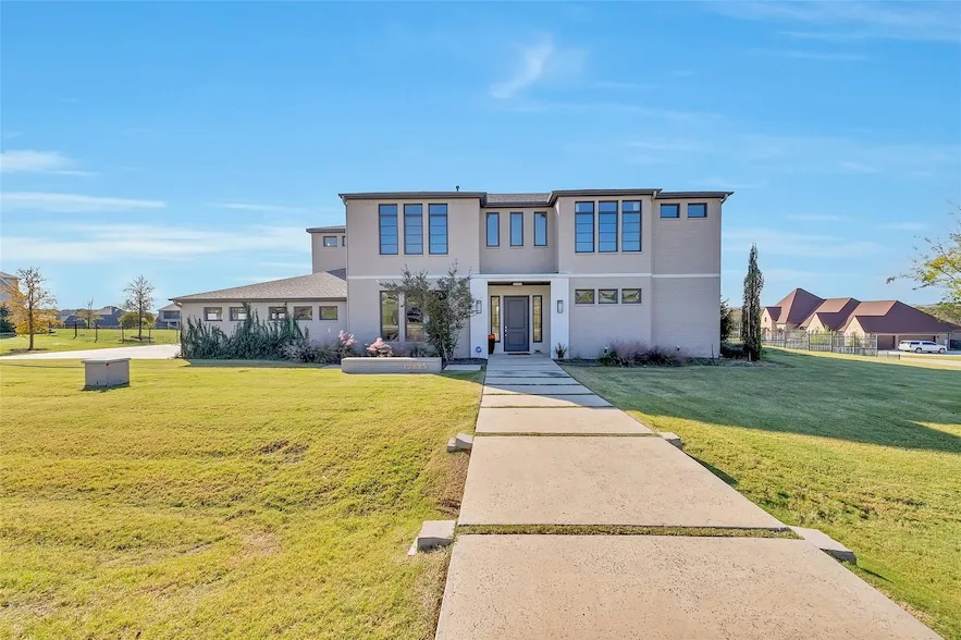 Welcome to 12825 Modena Court, an exceptional Cowboy Contemporary residence in the prestigious gated community of Bella Flora in Fort Worth, TX. This stunning estate offers 5,014 square feet of artfully designed living space, plus a rare 612-square-foot one-bedroom guest house with its own living area and bathroom a true gem in this sought-after neighborhood within Aledo ISD. Situated on a sprawling corner lot, this 5-bedroom, 4.5-bathroom home blends timeless elegance with modern Western flair. The light-filled interior is the perfect expression of Cowboy Contemporary style where rustic charm meets clean, sophisticated lines. A dramatic floor-to-ceiling fireplace anchors the spacious living area, which flows seamlessly into the gourmet kitchen. Thoughtfully designed for both functionality and aesthetic appeal, the kitchen features an oversized island, breakfast bar, double ovens, gas co...