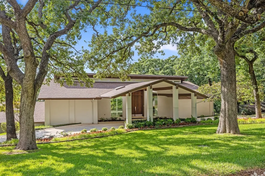 Wooded Elegance Meets Classic Texas Charm 2704 Sherwood Lane, Colleyville - Tucked away on a stunning 1.37-acre estate under a canopy of mature oak trees, 2704 Sherwood Ln offers a rare blend of tranquility, privacy, and timeless design. From the moment you arrive, you're greeted by lush surroundings and a storybook setting that feels worlds away yet you're right in the heart of Colleyville. Step inside and discover a home that exudes warmth and character. Vaulted ceilings with exposed beams, rich wood accents, and expansive picture windows create an inviting, light-filled interior. The spacious living areas are perfect for both quiet relaxation and lively gatherings, with views of the surrounding landscape at every turn. The kitchen is a chef s dream with custom cabinetry, stainless steel appliances, and elegant lighting combining rustic charm with modern touches. The primary suite is...
