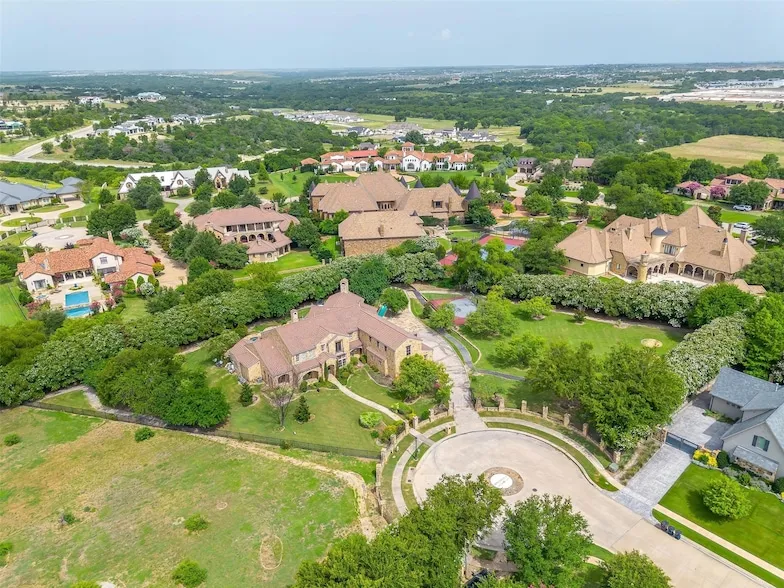 Welcome to a breathtaking 6,747-square-foot Old World Elegant-Tuscan-inspired estate, gracefully situated on 1.6 acres in a quiet cul-de-sac within one of Fort Worth s most prestigious luxury communities Montserrat. Behind the 24-hour guarded gates, this extraordinary residence offers an unparalleled blend of elegance, privacy, and lifestyle. Designed for refined living and entertaining, the home features 5 spacious bedrooms, each with its own ensuite bath and walk-in closet, ensuring comfort and privacy for all. Soaring ceilings and expansive windows frame picturesque views of the lush landscape and backyard oasis, flooding the interiors with natural light. Outdoors, discover a true resort-style retreat with two sparkling saltwater pools a designated lap pool and a play pool with hot tub perfectly complemented by a fully equipped outdoor kitchen and elevated deck with panoramic views. A sport court, game room with a built in bar, and media room provide endless opportunities for recreation and relaxation. From the grand tuscan villa architecture to the serene surroundings, every detail of this estate speaks to timeless sophistication. Ideally located just minutes from downtown Fort Worth, world-class dining, and the area s top private schools, this residence offers a rare opportunity to enjoy luxury, security, and tranquility all in one extraordinary address.