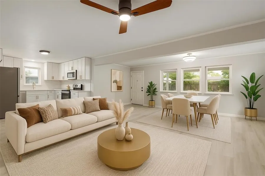 Welcome to 4012 Tejas Trail! Newly remodeled with a bright open floor plan, this charming property boasts brand new luxury vinyl flooring (LVP) and comes with modern amenities including a washer, dryer, refrigerator, dishwasher, and microwave. A luxury chandelier adorns the living room and the kitchen has brand new cabinets with quartz countertops. Double vanities are in both bathrooms and a new HVAC was installed as well. The spacious backyard with built in patio is perfect for outdoor entertainment. Close to local shopping, schools. and family-oriented entertainment options. Won't last long and priced just right. Schedule your tour today!