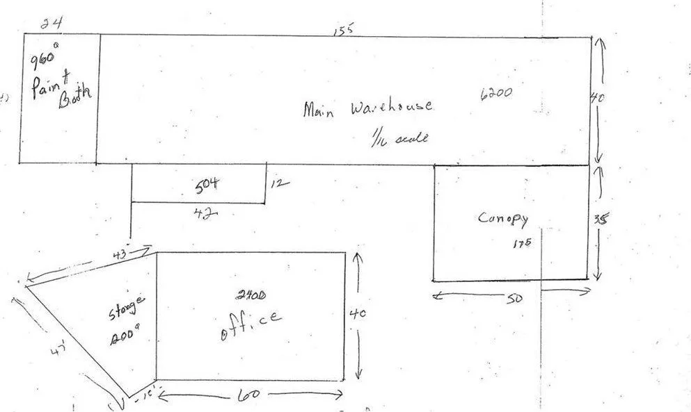 Well maintained property with 3 overhead 10 X 12 garage doors, office of 2400 Sq. ft. with receptionist area, kitchenette,2 restrooms, conference room, 2 executive offices, & 5 sales offices with central heat and air. Recent updating of carpet, paint and lighting fixtures in the offices. Also 1300 sq. ft. storage area, bay of 6400 sq. ft. and paint booth of 840 sq. ft. (See attached sketch) Asphalt or concrete road base surround all areas. Small fenced yard. Minimum 2 year lease.