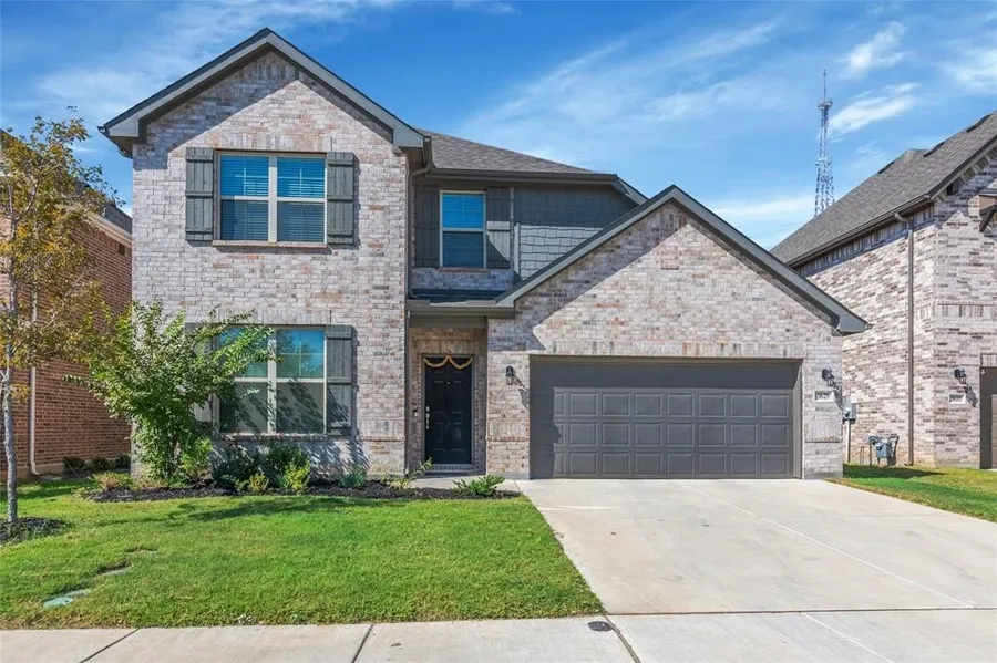 The first floor features a spacious primary bedroom with a luxurious en suite, a separate guest suite, and an enormous great room with a dining room, breakfast area, living space, and a gourmet kitchen. The second story has two more bedrooms and a full bath as well as a large loft area. The home is on a beautiful lot overlooking green space, nearby all the Trinity Parks amenities