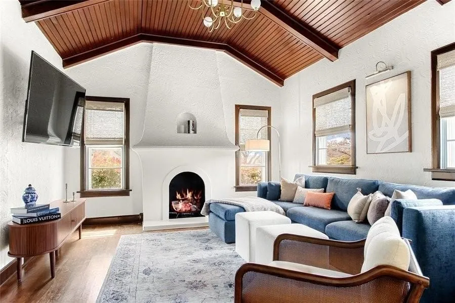 Beautifully restored 1928 Mediterranean-style bungalow in Fort Worth’s coveted Arlington Heights neighborhood. Brimming with original character and thoughtfully updated for modern living, this 3-bedroom, 2-bath home blends historic charm with contemporary comfort. The living room is anchored by a striking wooden barrel ceiling and an Old World-style fireplace. Original hardwood floors, arched walkways, and built-ins highlight the home’s timeless craftsmanship. Currently operating as a successful rental property leasing for $5,500 per month, the property is being sold fully furnished and move-in ready. Included are smart TVs, a fully equipped kitchen, designer furnishings from High Fashion Home, and luxurious Marriott-brand mattresses in all three bedrooms. Brand-new front-load washer and dryer and a stainless steel refrigerator are also included. Enjoy outdoor living with a charming covered front porch and a lush fenced backyard. An electric gate leads to a two-car garage, offering added privacy and convenience. Located just minutes from Camp Bowie, the Cultural District, Dickies Arena, Downtown and TCU, this home offers exceptional walk-ability, style, and value. Whether you're an investor seeking a turnkey rental or a buyer looking for a move-in ready luxury home, 4132 Pershing Avenue is a rare find. Schedule your private tour today and experience the charm for yourself.