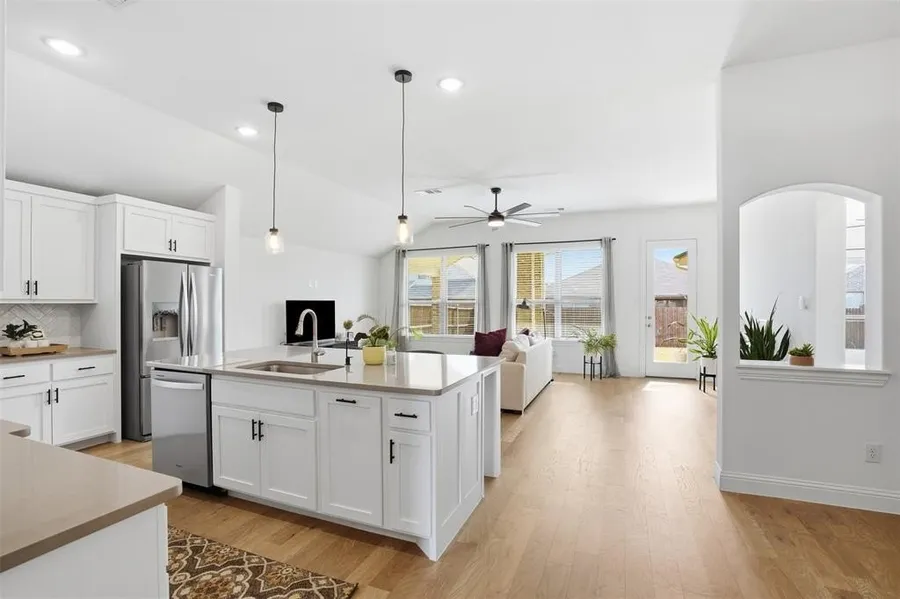 Immaculately maintained and move-in ready, this 2022 single-story home is located in the sought-after Marine Creek Ranch community. The open, light-filled floor plan features refined finishes and effortless flow from the spacious living area into a chef-inspired kitchen complete with a large island, gas cooktop, walk-in pantry, and elegant eat-in dining space. The private primary suite is filled with natural light and offers a spa-like retreat with a garden tub, beautifully designed shower, separate vanities, and an expansive walk-in closet with custom built-in cabinetry, all ensuite to the bedroom. A third bedroom offers flexibility as a home office, fitness room, or additional living space. Neutral, sophisticated tones enhance the home’s modern aesthetic throughout. The covered back patio extends the living space outdoors, while the privacy-fenced backyard is ready to be tailored to yo...