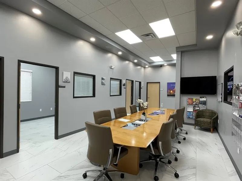 Two office rooms are available with windows size 10x10 $600 per month and One office 10x20 $1000 per month. Fast internet, utilities, common area with conference table, lunchroom area are included.