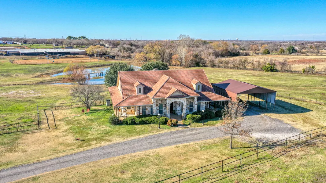 INCOME PRODUCING horse property with beautiful home for sale in Mansfield, outside the city limits. Beautiful home on over 15 acres, full care equestrian facility. Forty eight inside stalls with up to 16 additional outside stalls and a 140 X 220 outside lighted arena. Completely fenced and cross fenced. One acre tank with swim lines crossing for equine aqua therapy. Permitted for up to four trailers on property as well, all on separate septic system. Home features spacious rooms, high ceilings and large master area. Clay roof, large covered porches, and covered parking for your RV or motorhome. Texas living at it's finest. This is truly a unique find, located close to shopping 20 minutes to downtown Fort Worth.
