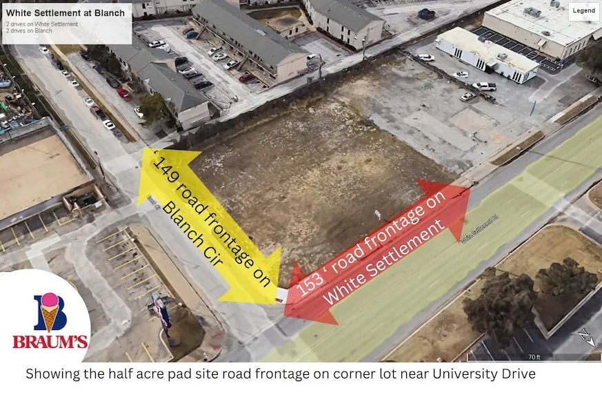 Prime location just minutes from Downtown Fort Worth, the Cultural District, and West 7th. Positioned on a high-visibility corridor with strong traffic counts, this site offers excellent accessibility and proximity to key commercial and residential developments. Surrounded by growth and opportunity. Zoned E commercial. Directly at University and White Settlement, the $1.7 billion Westside Village project is approved, bringing new office towers, retail, dining, a hotel, and nearly 1,800 multifamily units to the immediate area. City-led improvements to University Drive and West 7th will add landscaped medians, upgraded signals, pedestrian enhancements, and bike lanes, creating a safer and more connected corridor that strengthens retail and commercial visibility. Just north, the Panther Island Central City project continues to advance, unlocking major riverfront redevelopment opportunities ...