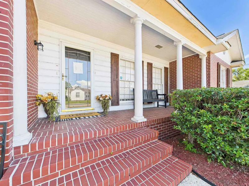 Step inside this brick beauty in the heart of downtown Perry where timeless charm meets space and comfort. With over 2300 square feet this home showcases tall ceilings, antique glass doorknobs, gorgeous crown molding, fresh paint, and beautifully renovated bathrooms that balance modern updates with classic details. The oversized living and dining rooms are perfect for big families, holiday gatherings, and evenings of entertaining friends. Natural light fills every corner while the updated functional kitchen keeps you connected to the flow of the home. Four bedrooms and two and a half bathrooms are conveniently located on the main level making the layout both practical and welcoming. Outside a spacious city lot offers a quaint and cozy outdoor area set up for every season. A large two car carport provides plenty of covered parking and a detached storage building currently used as a home gym adds even more flexibility with its own bathroom. Adding to the property's value is the 1500 plus square foot carriage house. Upstairs has been converted into a fully operating salon while the downstairs space offers partially renovated areas that could serve as office space or be finished as an additional apartment. All of this is within walking distance to the city park and historic downtown Perry with shops and restaurants. This property is full of possibilities and ready for family life entertaining or income producing potential.