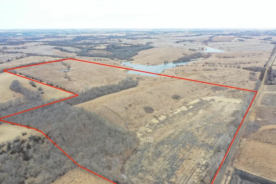 The farm is leased for 2021. The remaining 43.6-acres consist of timber, draws and includes the dam of a large beautiful pond that provides year-round water source for the wildlife along with great fishing opportunities!