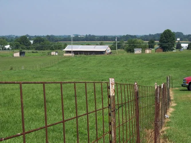 3.5 Acres m/l of mostly flat farmland. Totally fenced with pond and 44 ft. x 48 ft. metal barn. About 90 ft. road frontage, county water and electric available. Horses, cattle and doublewides are acceptable. Great little mini farm!