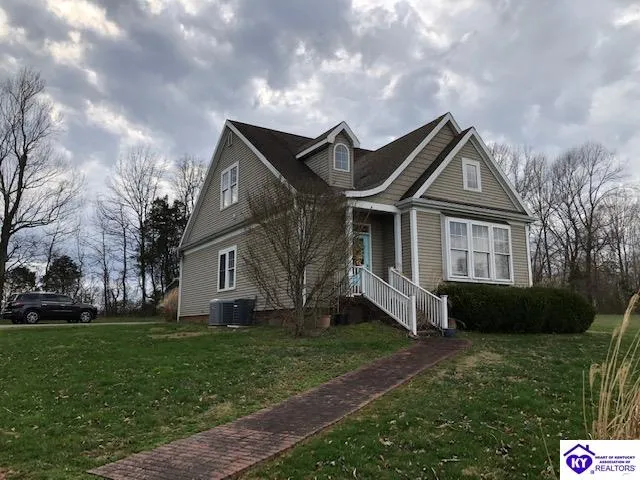 Fantastic 1.5 story. home situated on 2.7 scenic acres located 3.5 miles from down town Campbellsville. House features 3 bedrooms (one is currently a piano/study room). Modern colors make this home a sight to see. Eat in kitchen area is a delightful place for family dining as well as a casual area. Living room features a electric log fire place and a staircase leading to the upper floor. You will love the library area that leads into the master bedroom area with large master bedroom. Basement is spacious and could be finished to the needs of the new owner. Car canopy stays with the property as well as the storage shed. Be first to see this wonderful property.