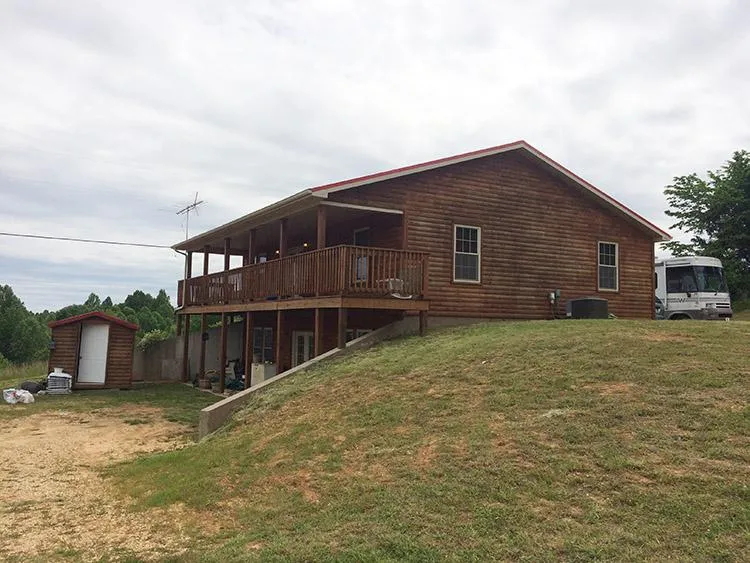 Located 1233 Maple Road Campbellsville on the Marion Taylor County line. 7 year old 2 level Log Sided Home on 3.6 acres m/l. Home as large open kitchen, dining, living area combo with stone fireplace and double doors to large 8x40 covered porch. 2 bedrooms, 2 full baths and utility room on upper level. Lower level has large open rec room, kitchen, living , dining room combo with double doors to covered 8x40 patio, utility, 2 bedrooms, full bath. Extras are appliances, log sided storage building and 3.6 acres of mostly open land. Call or text Monty 270-402-1176.