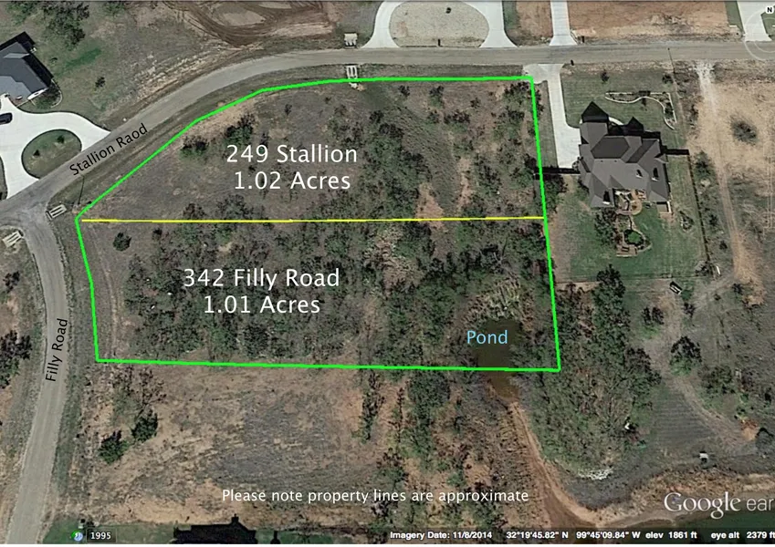 Research Parcel InformationSouth on 83 84 past Abilene Regional. Mountain Shadows will be on the West side of highway with horses on entrance. The lots are on the corner of Stallion and Filly. See pictures for estimated property lines.