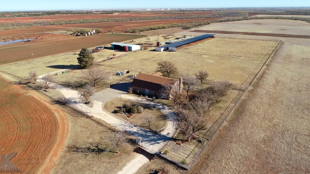 Beautiful ~160 acre ranch property located just minutes south of Abilene in Wylie ISD. Over 4000 sq ft ranch house with 5 bedrooms & 2.5 baths. Pipe pens all around home, fenced and cross fenced with automatic gated entrance off paved FM road & between front pasture and yard area. Large equipment shed with electric. Livestock barn with bunkhouse & tack room, 5 large runs and 8 smaller runs, all with water, tall pipe net fence on all making them suitable for horses, show cattle, sheep, goats, or even exotics. Property is completely fenced & features 4 tanks, water access in each pasture, & 2 branches of Little Elm Creek running through it. Roughly 93 acres currently cultivated with remainder pasture.