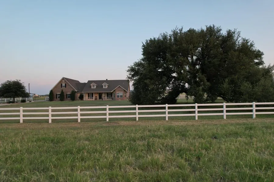 Tranquil country life awaits you in this custom home nestled on 9.89 manicured acres off CR 621. This property, with large beautiful live oaks & well maintained pasture is located less than 3 mi west of Tuscola. This home, built in 2005, boasts 2,574 sqft consists of 3 bedrooms, 2.5 baths, an office & an upstairs bonus room. The main living area, adjoining kitchen, & dining area have 12' ceilings accented with crown molding. Home features a floor-to-ceiling rock fireplace & French doors that open to an immaculately landscaped backyard oasis with an in-ground gunite pool & large covered deck. The outdoor landscape is watered by an automated sprinkler system & surrounded by a 3-rail, white vinyl fence that continues to the main entrance equipped with a security gate. The property has an addition 2-car carport, covered barn-RV-equipment shed complete with a 3,000 gal water collection system. Additional 4.5 Acres can be negotiated with water meter available.