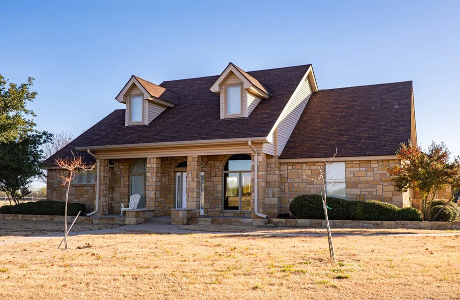 Discover this private, well maintained, custom 3,499 sqft home nestled on 46+ acres, featuring an in-ground pool and hot tub, perfect for relaxation and entertainment. This 4 bedroom, 3.5 bath home is nestled privately off CR 336 and boasts a custom kitchen with granite countertops, double oven and includes a spacious movie or game room and office, making it the ideal family home! This highly desirable property is situated conveniently within Wylie ISD and offers quick access to city amenities. The acreage includes a scenic 1.5 acre lake, wooded riding trails and abundant wildlife. With a three-stall horse barn, workshop, livestock shed, cross fencing, and established B-Dahl grass, this property is certainly an exceptional offering that caters to equine enthusiasts and nature lovers alike. Country living awaits...this property is a must see!