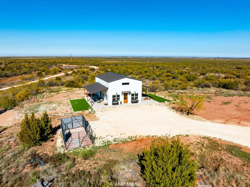 This Barnominium sits at the top of a hill surrounded by pure west Texas country. Get away and enjoy the peace of the country, sip coffee on the porches and enjoy a beautiful sunrise and sunset. Many wildlife can be seen near the feeders, around the property and flying in the sky. You can also get a front row seat to view the military planes as they fly over during the day practicing their flight trainings.