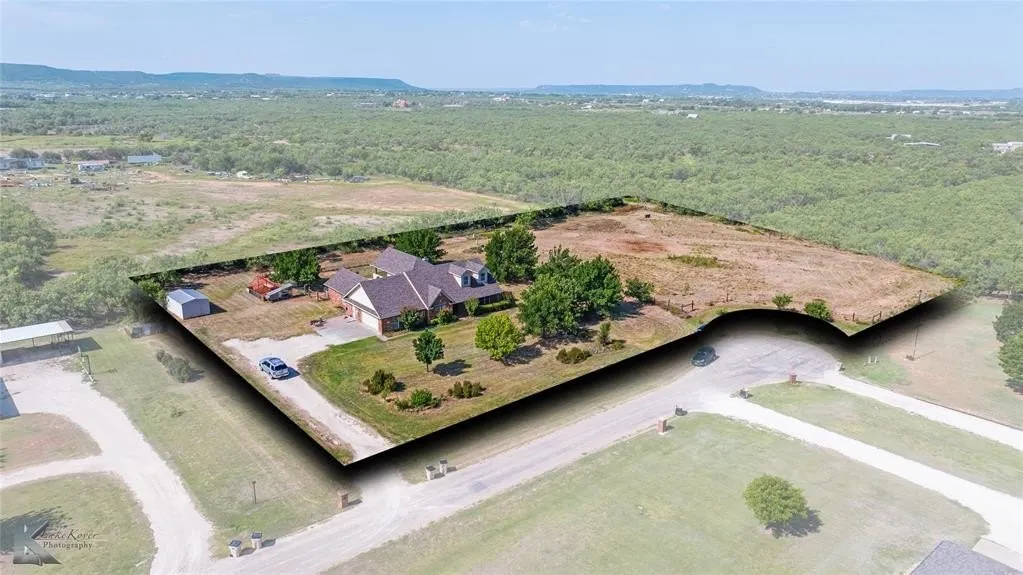 Nestled at the end of a peaceful cul-de-sac just South of Abilene, Texas, this charming 3-bedroom, 2.5-bathroom residence with 2 living areas and 2 dining areas offers a unique blend of comfort and potential. With its thoughtfully designed two-story layout and an additional acre of adjoining land, this property presents a rare opportunity for those seeking both space and privacy. Upon entering, you're greeted by a fairly open floor plan that creates a welcoming ambiance. The main living area serves as the central heart of the home, providing a flexible space that can be tailored to your unique style. The split bedroom layout offers privacy and convenience, with the primary suite strategically located away from the other two bedrooms, ensuring a serene retreat. The suite is complete with an en-suite bathroom, enhancing your personal sanctuary. Private access to the enclosed back porch area from the master, perfect for a hot tub! For everyday ease, the home includes a pass-through laundry room with an integrated mudroom area, offering the perfect transition from the ample two-car garage or the side yard. This space seamlessly blends utility and organization, designed to streamline daily routines and keep life running smoothly. Situated on 2 generous 1-acre lots, the property boasts a partially fenced yard enveloped by mature trees, enhancing the sense of seclusion while providing natural beauty and shade. This includes the 1.02 acre lot directly to the west of the main property. The expansive land grants a blank canvas for outdoor creativity—whether you're envisioning a lush garden, entertainment area, or simply enjoying the tranquility of minimal neighboring houses. This distinctive property combines the benefits of a community setting with the freedom of open land, making it an ideal backdrop for creating lifelong memories in a truly serene environment. With limitless possibilities, this house is more than just a home—it's a foundation for your future.