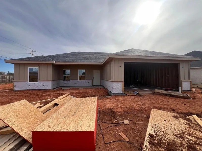 New construction by Red Oak Custom Builders in Waterside at Cedar Creek, Abilene ISD. This 3-bedroom, 2-bath home has an open floorplan and large covered porches in front and back. This new build stands out in the subdivision with ceiling fans, granite counters, a garage door opener, and a fully fenced back yard—features not commonly offered nearby. Plus, a great corner lot that is just over one-fourth of an acre with front-yard sod included. The kitchen includes a pantry, large island, electric range, microwave, dishwasher, and disposal. Builder plans include vinyl plank flooring in the main living areas and carpet in the bedrooms. The primary bedroom has an ensuite bathroom with a double sink vanity and tub-shower combo. This home is affordable, functional, and cute as can be! (room sizes approximate - estimated completion June 2026)
