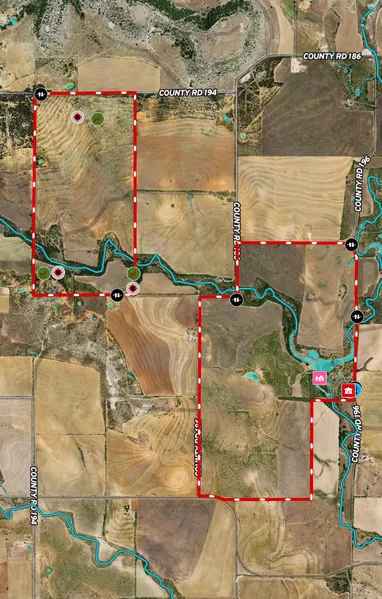 Access: Paved road frontage on two sides, County Road 196 on the East side and County Road 186 on the West side making this an excellent place to divide into several tracts.