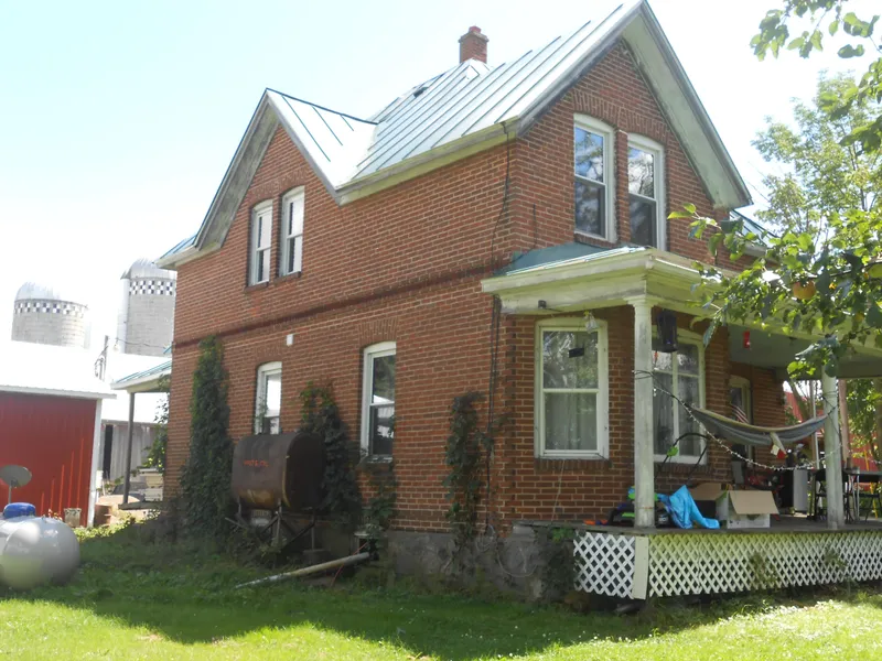 175 acres (mol) dairy farm with an approximately 160 acres of good, productive, tillable farm ground, 9 acres wood lot, balance of land is bldg site & permanent pasture. 4 bedroom, 2bathroom 1-1/2 story brick home, main level has kitchen with wood cabinets, linoleum flooring. Full bath and laundry room with ceramic tile flooring, rear enclosed porch, 1 bedroom on main level with hardwood floor and ceiling fan, a 2nd full bath on main level. Living and dining room with hardwood floors. Open/covered front porch.