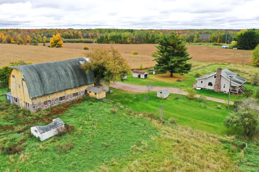 Characteristic 4 bed, 1 full bath hobby farm with +/-80 acres. Original hardwood flooring throughout, covered front porch and a concrete basement. The +/-80 acres features +/-67 tillable acres, wooded lands for hunting, pond and pasture lands. Charming barn with a milk house, hay mow, two feed rooms and a lean to for equipment storage. Machine shed, detached garage and freezer room. Two mobile homes on the property offers $795.00 monthly rental income. Seller currently rents out a portion of the tillable acres for $3,000 dollars annually. Located close to the National Forest, Pershing Wildlife Area and Miller Dam Flowage. Refrigerator, stove, washer, dryer in the farm home, (2) stoves, (2) refrigerators and (2) storage sheds for the mobile homes are included in the sale price.