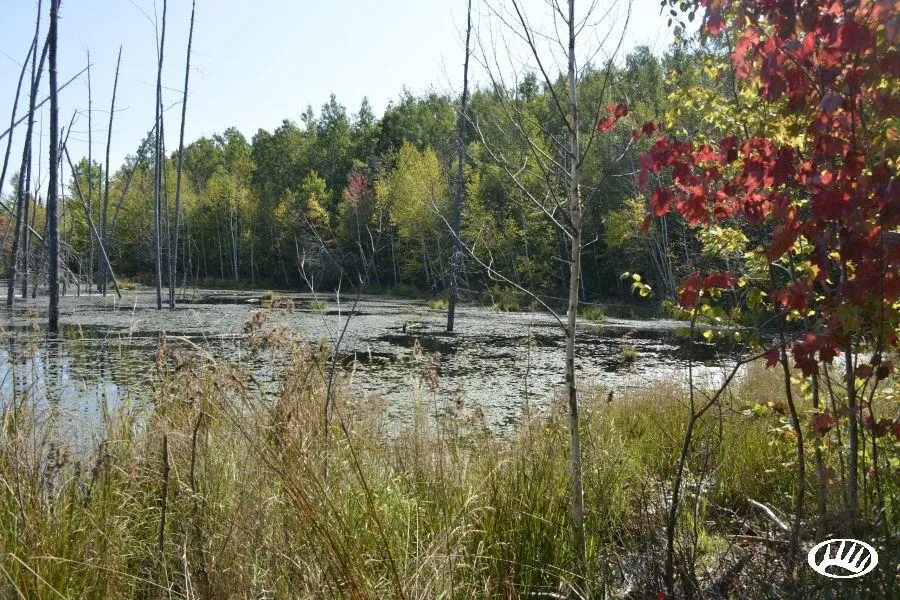 - Established trail system from previous logging activity will allow you to trailer your duck hunting skiff right to the water’s edge